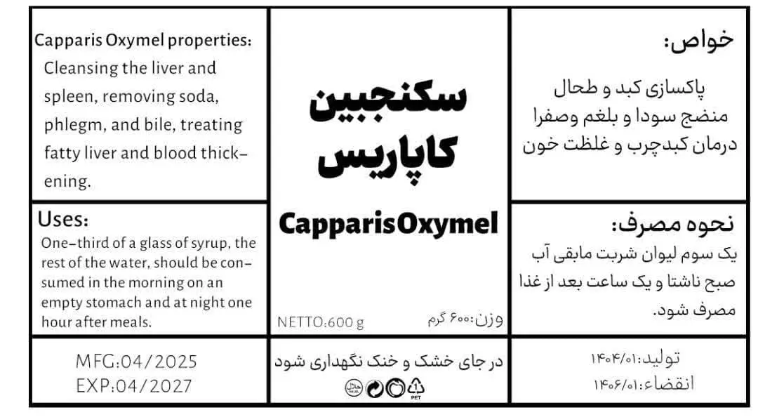 سکنجبین کاپاریس خواص:پاکسازی کبد و طحال،منضج سودا و بلغم و صفرا،درمان کبدچرب و غلظت خون نحوه مصرف:یک سوم لیوان شربت مابقی آب،صبح ناشتا و یک ساعت بعد از غذا مصرف شود ترکیبات:عصاره کاپاریس،شکرقهوه ای،سرکه اطلاعات بیشتر کپی ادرس صفحه موجود 105,000 تومان تمامی قیمت ها و موجودی به روز میباشد
